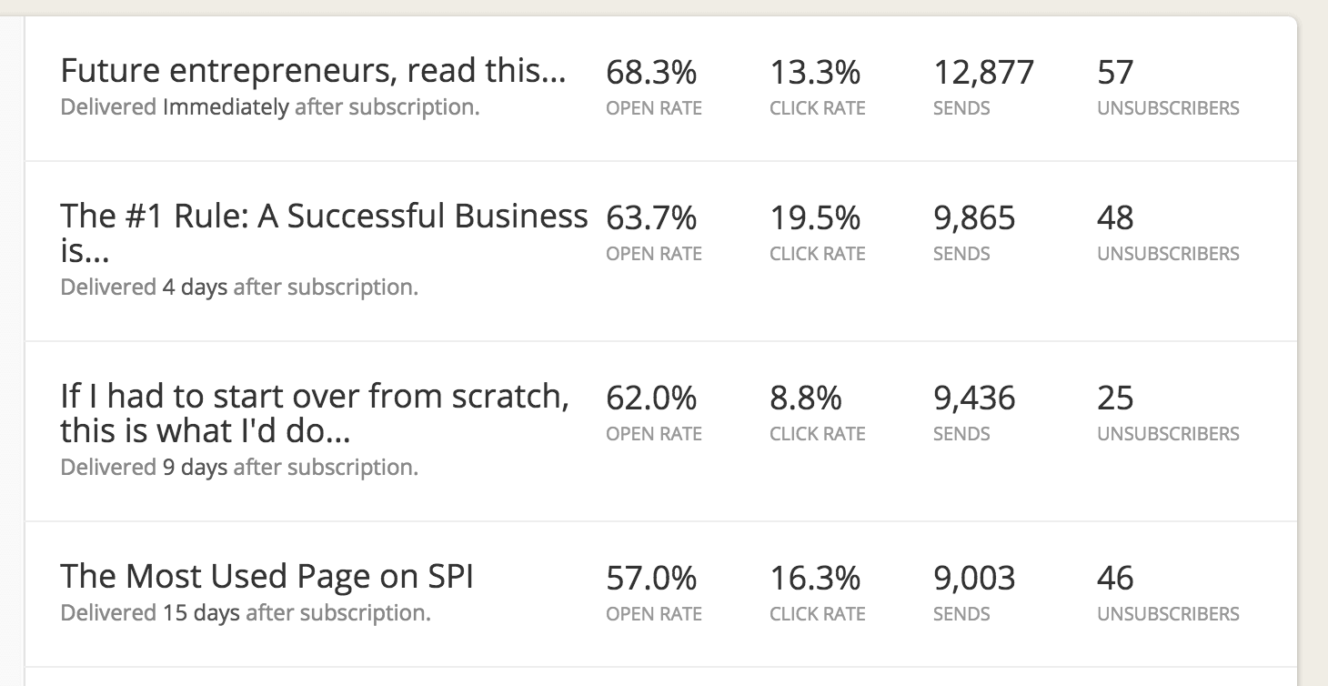 Here’s a screenshot of the stats from a few of my emails from one of my sequences: