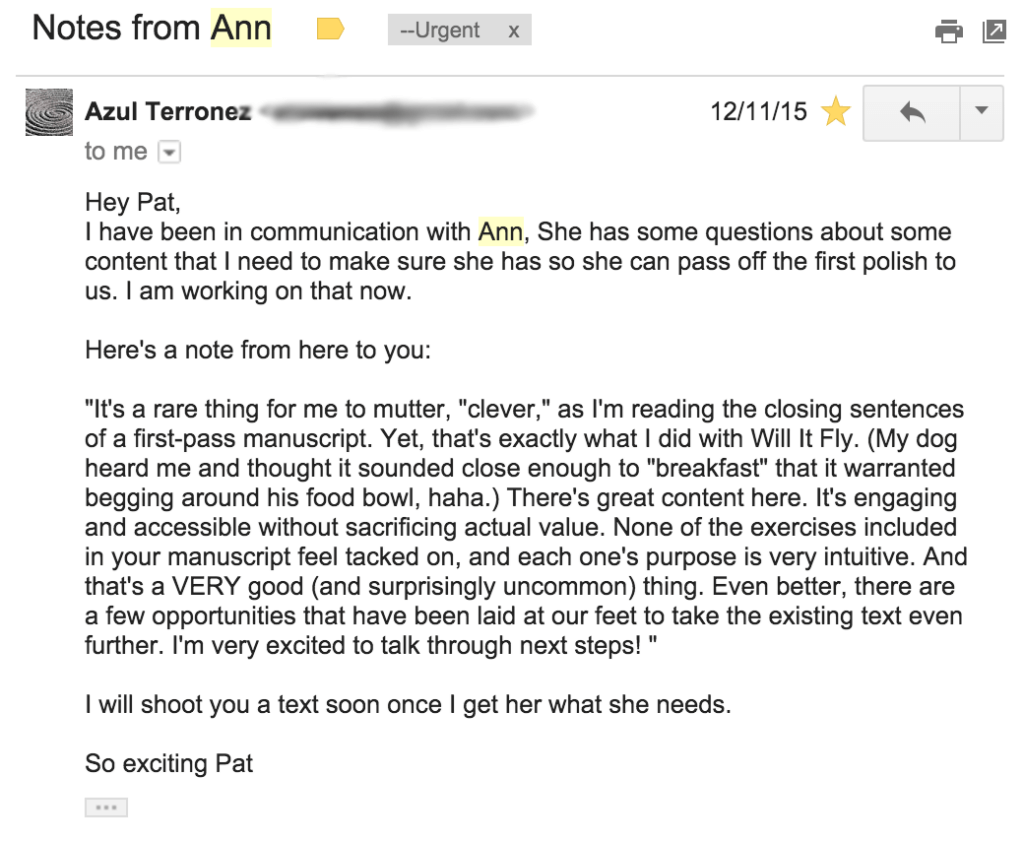 In addition to all this goodness, because of Pat’s experience working with Azul to turn Will It Fly? into a Wall Street Journal bestseller, he can vouch for the level of quality of Azul’s services and the results they produce for his clients.